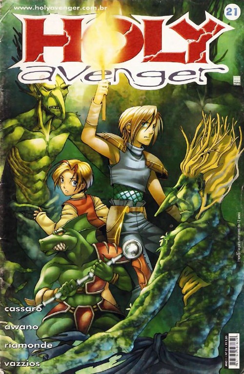 Cresci lendo quadrinhos escritos e desenhados pelo Marcelo Cassaro, como O Pequeno Ninja, As Aventuras dos Trapalhões e Black Kamen Rider (bons tempos!). Assim, sempre soube que o Cassaro era um roteirista de primeira grandeza. No entanto, só descobri outras surpresas magníficas ao deparar-me com a série Holy Avenger. Não vou lembrar exatamente a partir de que número comecei a acompanhar, mas fiquei maravilhado com aquele traço limpo, delicado, sinuoso e elegante da Erica Awano. Eu, que já queria escrever que nem o Cassaro quando crescesse, passei a incorporar um quê da Awano no meu desenho mangá. E o que falar do enredo? Envolvente, bem articulado, com personagens e situações construídas de tal forma que era quase impossível não querer ler o próximo capítulo. De imediato assinei a revista, comprei os encadernados dos números anteriores que faltavam na minha coleção e passei a acompanhar com ansiedade cada edição que saía, mês a mês. Mas acabou! Que bom que acabou! Toda série deveria ser finita como Holy Avenger, para ter começo, meio e fim e terminar no momento certo, no auge.