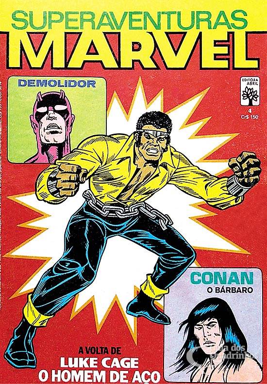 Chegou a edição que estava faltando para finalmente completar a minha coleção da SAM. Como já dá para perceber, não tenho frescura de ler os gibis fora de ordem! O que dá até um “barato” legal! A edição abre com uma história do Luke Cage. Como é bacana ver no gibi os personagens que apareceram na série, como a enfermeira Claire Temple e o vilão Cascavel. Os desenhos do veterano George Tuska estão bem legais. Deu uma vontade sincera de continuar lendo essas aventuras do Luke Cage. Completam a edição o Doutor Estranho, Conan e o Demolidor, em um confronto frenético contra o Doutor Octopus pelas mãos do Frank Miller.