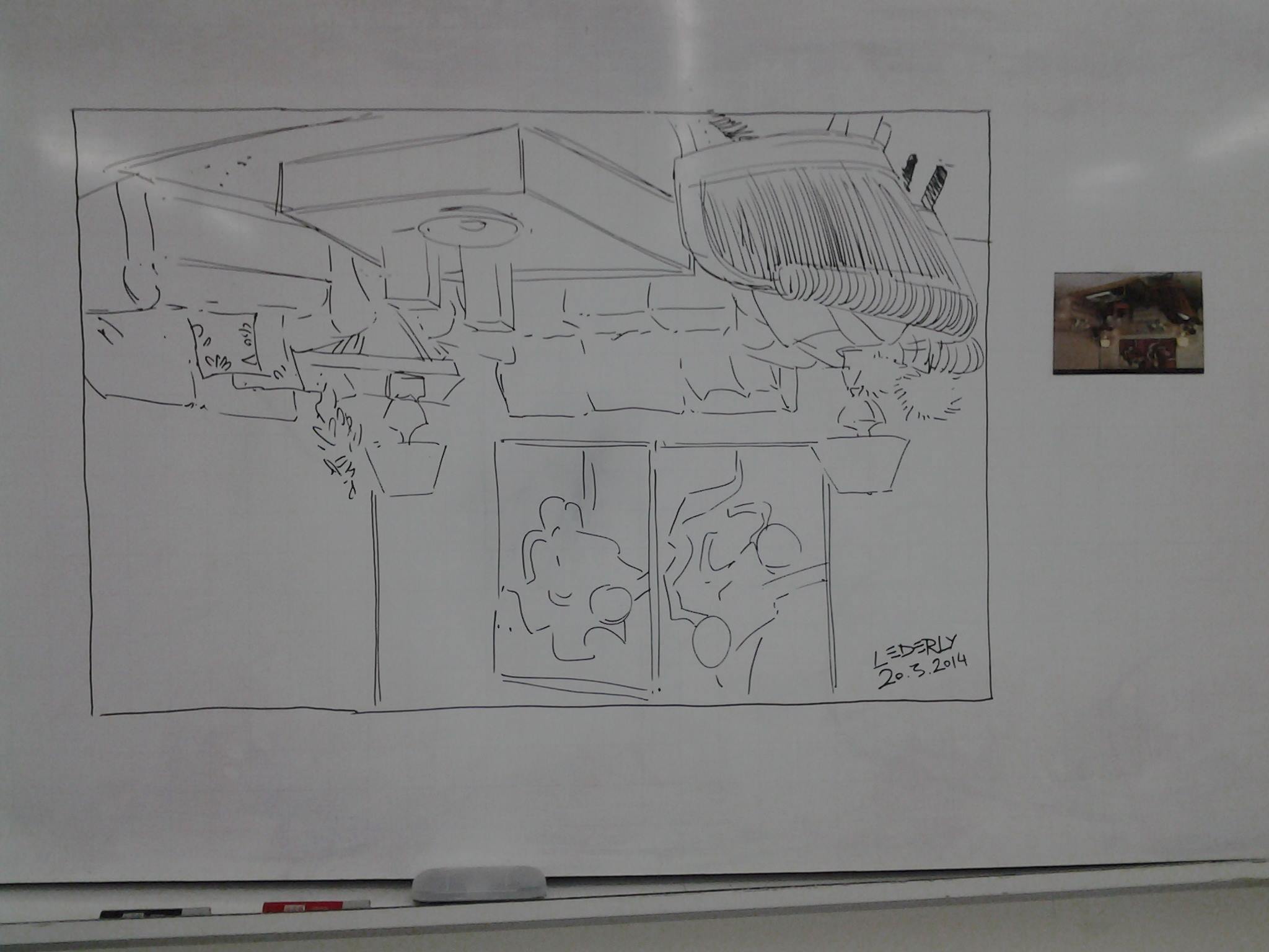 A correria do dia-a-dia é tão grande que às vezes não sobra tempo para praticar. É na sala de aula, com a companhia dos meus padawans, que aproveito para manter em dia o exercício “físico” da arte. O ambiente, claro, é todo propício, já que toda a sala “respira” criatividade. Como ministro disciplinas bem variadas, como Desenho Vetorial, Desenho Artístico, Desenho de Moda, Expressão Gráfica, Imagem Digital e Editoração Eletrônica, os “rabiscos” são igualmente diversificados, que vão desde estudos de demonstração na lousa e computador até desenhos inusitados feitos ao bel prazer da inspiração no sketchbook. Confira: