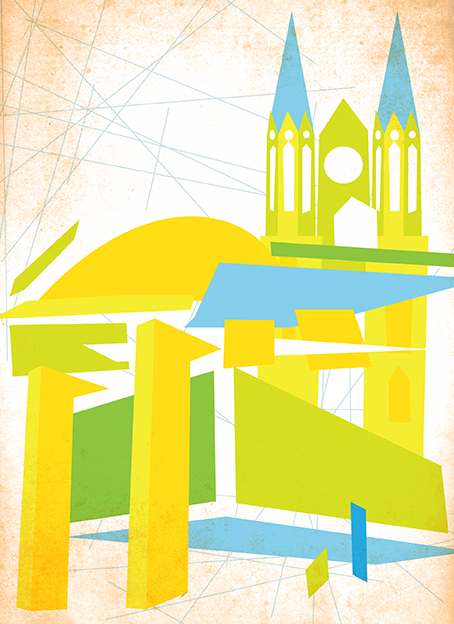Aproveitando o clima de futebol que começa a tomar o país, relembro um trabalho muito bacana que realizei para o Senac. Trata-se das ilustrações para a agenda 2012, cujo briefing pedia para abordar o sucesso dos alunos da instituição, Copa do Mundo e as áreas que o Senac atende. A partir daí, surgiu o tema “um país de vencedores” e passei a focar as ilustrações ainda mais nos profissionais formados ano a ano. Assim, surgiu a ideia de pegar depoimentos de ex-alunos e transformá-los em ilustração com poses de comemoração de gol! Essas ilustrações, que compuseram a frente das folhas dos meses, mostrarei em outras oportunidade. Abaixo, você verá a capa da agenda, com uma imensa torcida desenrolando um bandeirão com o nome “Senac”, e as ilustrações que ficaram no verso das folhas dos meses, que representam as doze cidades-sedes em abstrações dos seus principais símbolos.